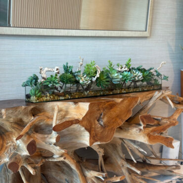 48″ Casa Moderna Rectangular Glass Planter with Succulents and Driftwood