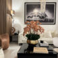 The overall height of the arrangement is approximately 28 inches, with a width and depth of approximately 24 inches. Due to the handmade nature of this arrangement, overall dimensions may slightly vary. Placement of flowers may also vary, ensuring each piece is truly one-of-a-kind.