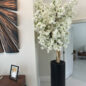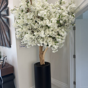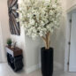 Cherry blossoms are a symbolic flower of the spring, a time of renewal, and the fleeting nature of life. Anchored in our St. Tropez matte black planter, this chic design adds a modern twist to any decor. The sleek planter easily compliment any space around the home or office. Its size and shape provide a perfect canvas for a our large white cherry blossom tree. Each tree is a one of a kind, flowers are placed by hand by our skilled artisans onto large wood trunks of California mountain wood. This bouquet of lush elegant white cherry adds a fresh and stylish touch to any room.